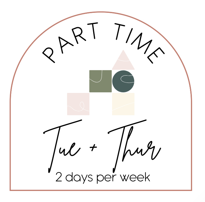 While in years passed we have offered a variety of schedule options to best accommodate your family's unique needs, this year we will only be offering our part time program on Tuesdays + Thursdays as our family enters the world of homeschooling our two school-aged children as well! Thank you for your flexibility and understanding!